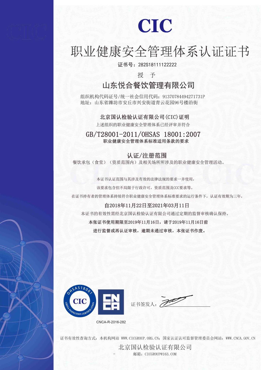 职业健康管理体系认证